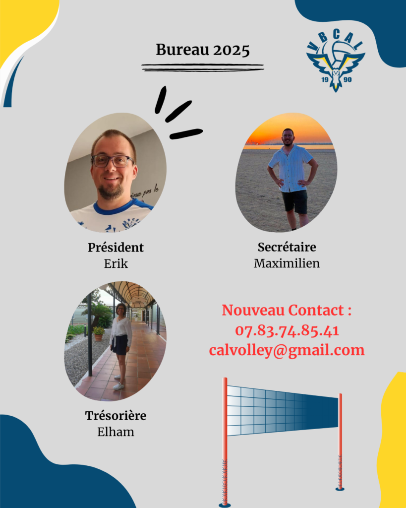 Suite à l’assemblée générale qui s’est tenue le 25 juin 2025, voici le nouveau bureau du VBCAL. Après 10 ans de présidence, Mehdi laisse sa place à Erik.